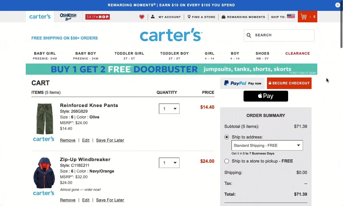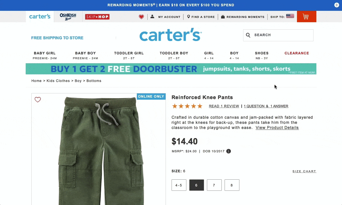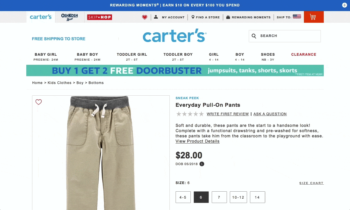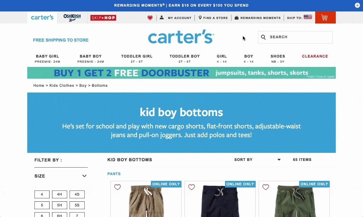 на сайте Carter's