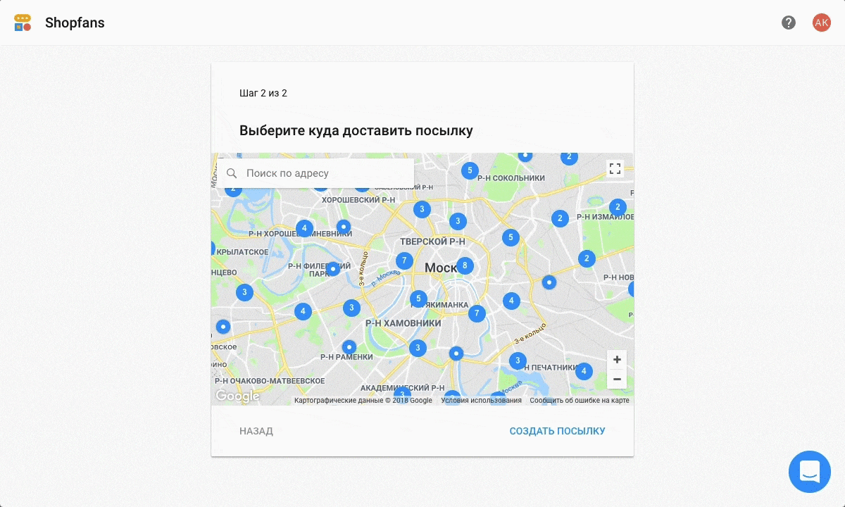 Если у вас ещё нет адреса, зарегистрируйтесь на Шопфансе. Если вы уже зарегистрированы, посмотрите адрес в личном кабинете.