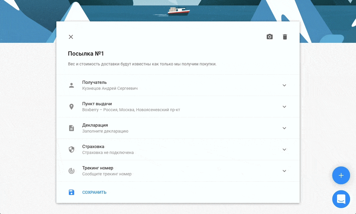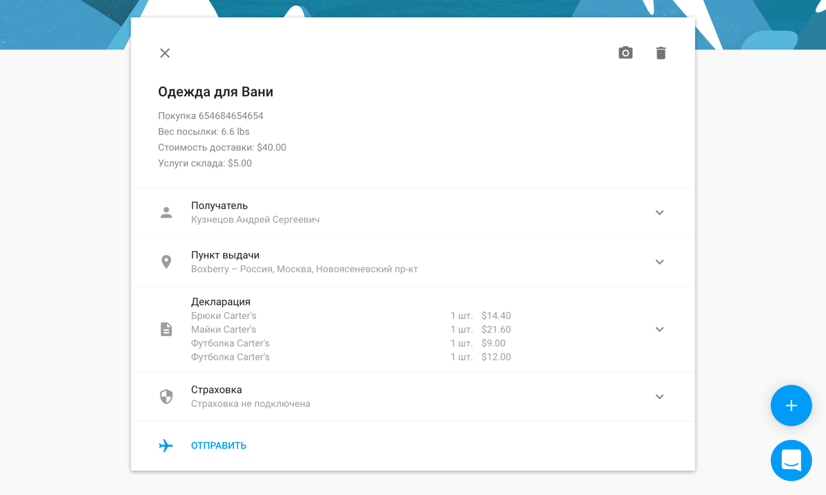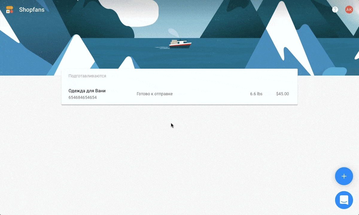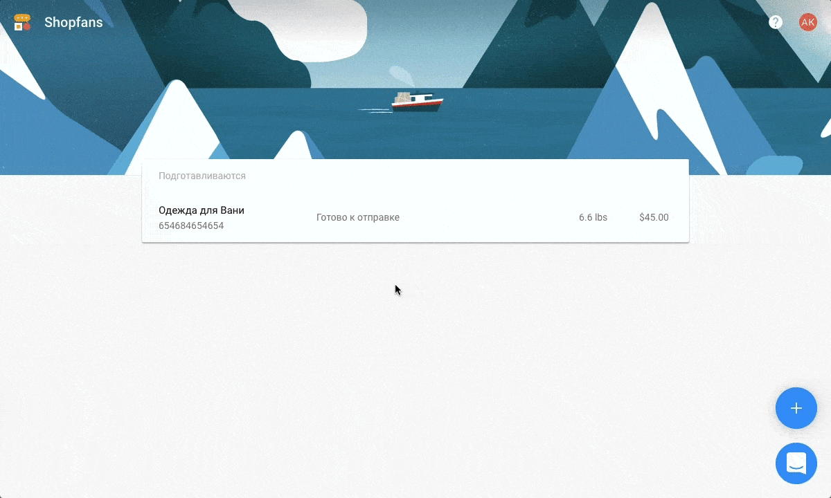 Когда ваша посылка доедет до склада Шопфанса, мы её взвесим и напишем вам по электронной почте. В письме нажмите на кнопку «Отправить посылку», чтобы перейти в личный кабинет и закончить оформление доставки.