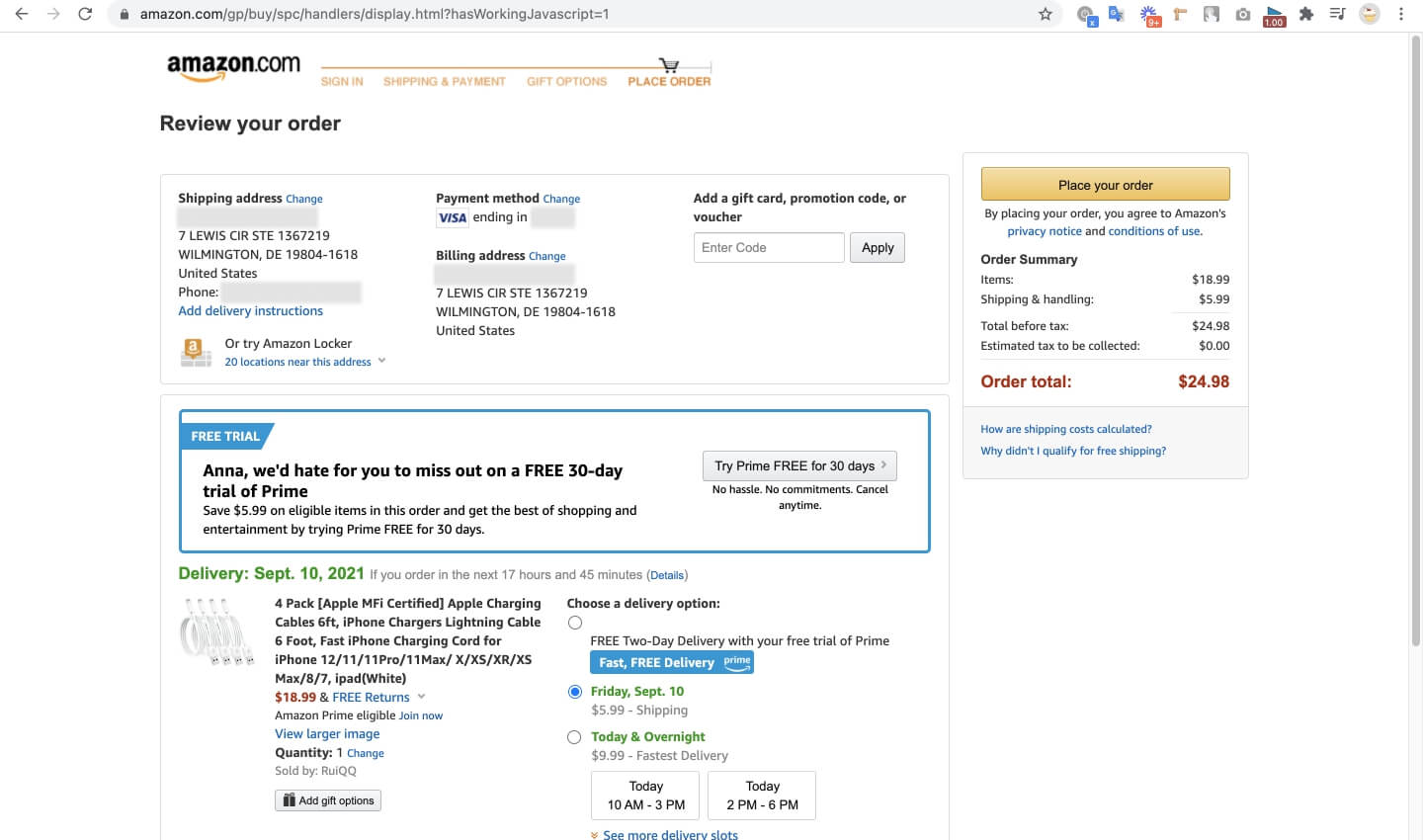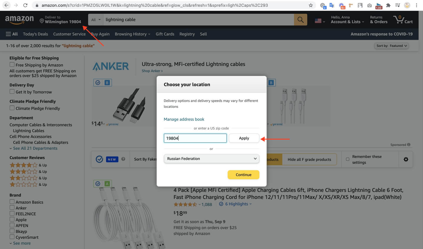 Представим, что вы уже выбрали то, что хотите купить. Например, это провод для зарядки iPhone на сайте amazon.com.
