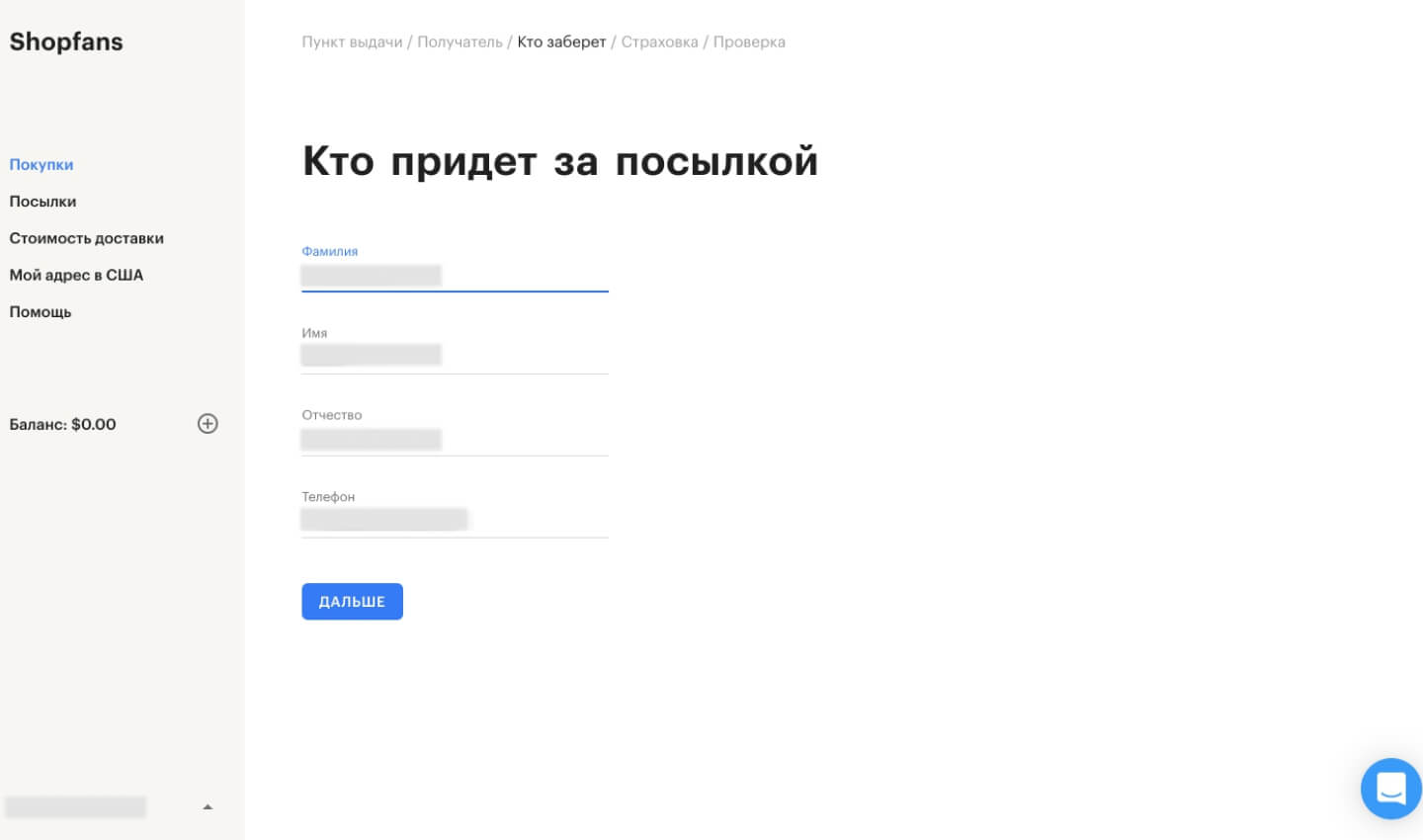 Заходите в личный кабинет shopfans.ru и переходите в раздел «Мой адрес в США».