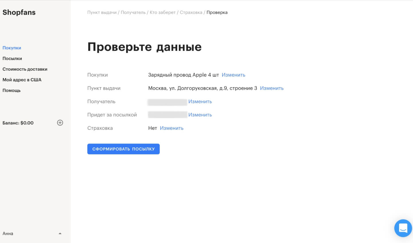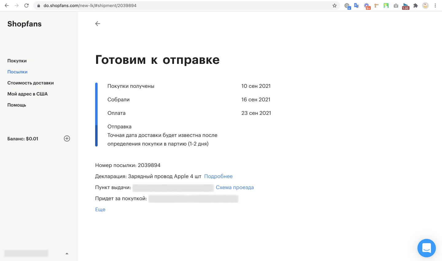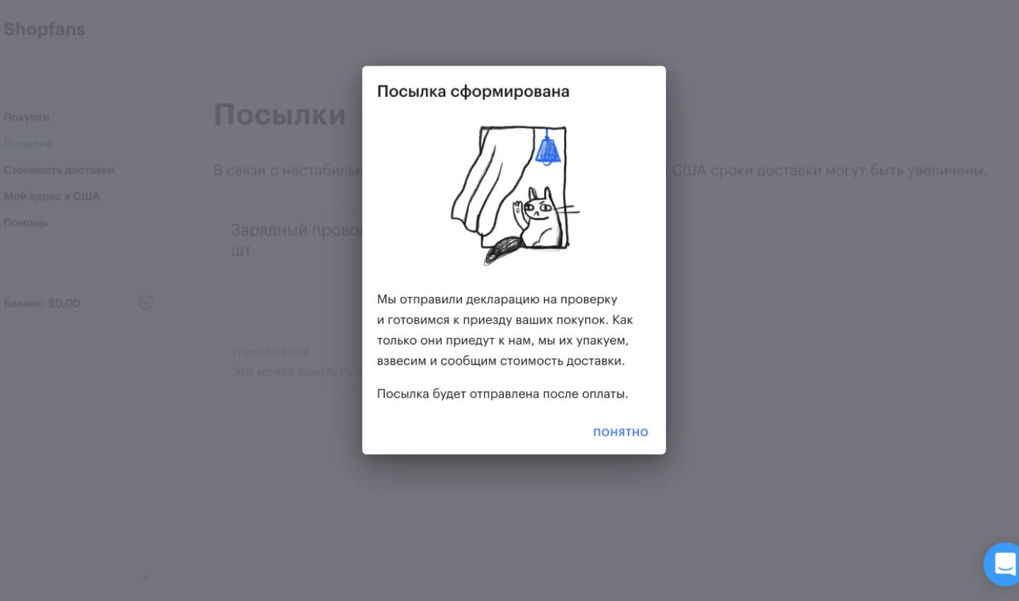 Вам придёт письмо от Shopfans, когда ваша покупка окажется на складе, и можно приступать к сборке посылки.